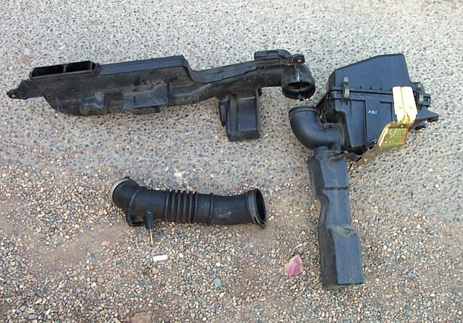 What is the number-one complaint that so-called "enthusiast" automotive journalist have against the Protege? The engine is too loud. And, from having sold cars of many makes, I have found the vast majority of buyers don't want to hear the engine at all... not at idle, not at WOT. Heck, they don't even want to hear the engine when the hood is open! In many people's mind, a noisy engine means lower quality. Manufacturers spend millions of dollars a year (combined) designing and testing intake systems to be as quiet as possible. Take a look at this pic of my stock intake removed. Everything there is designed to quiet intake roar... efficiency is a secondary priority.