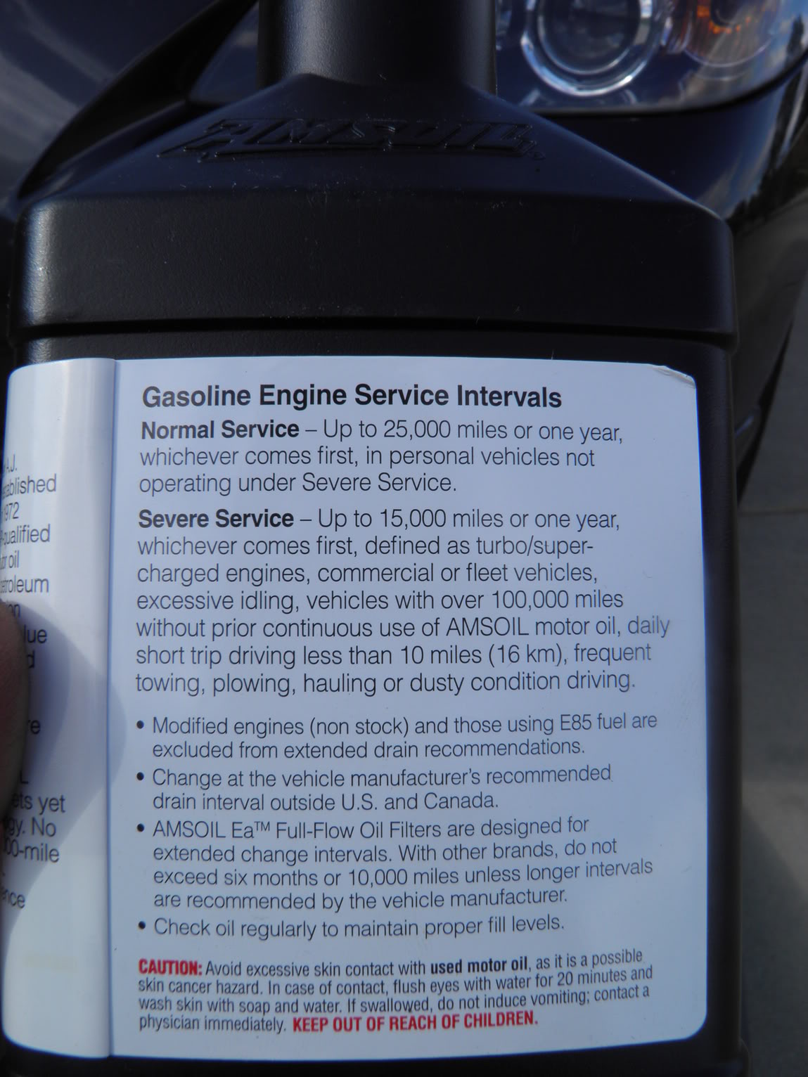 the truck currently has 127,200 miles. I first put the Amsoil in at 30K miles, then 50k, then every 25K miles. I use the Amsoil filters too. My last oil change cost me $96 but I bought 8 Qts of oil so I can add when needed. (truck takes 6 Qts) I check the oil level regularly and it burns about 1.5 Qts between the 25K mile oil changes, but the truck runs great. I was very hesitant at first, but at almost 100K Miles since switching to Amsoil, I'm sold. I also run it in the pre-mix in my 2-stroke dirtbikes at 40:1 for the past 5-years and have never had an issue. Powervalves are so clean after taking the heads off to inspect them. Just got an '06 Mazda3 Hatchback and will need to do some research since this 2.3L calls for 5W20. How long do you go between oil changes? |
