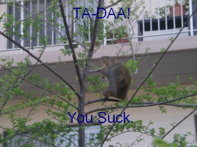 You know what's crazy? I post killer pics of my car, and no one comments on it. Then, we stick a pic of a squirrel in a tree and boom! watch the posts roll in.