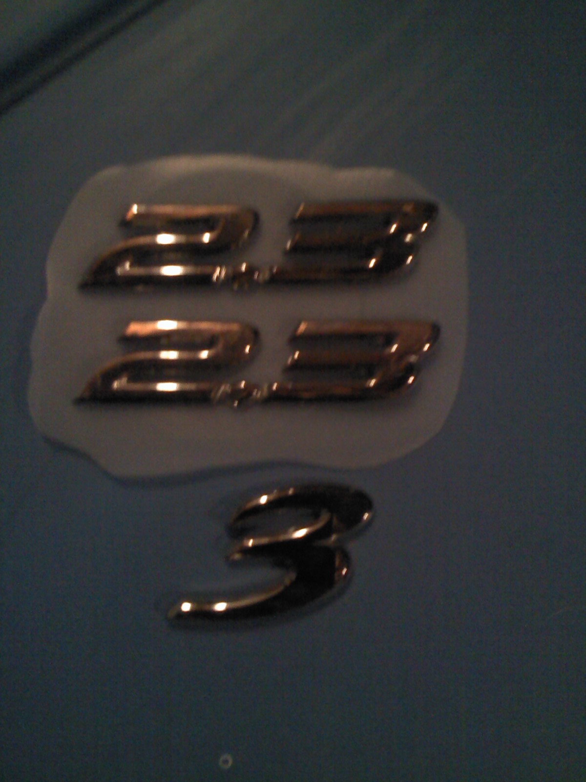 I've got the "2.3" badges from my doors, and the "3" from the trunk. I also pulled the door bumper guards off - make an offer for any of those parts... they were pulled off when the car was just weeks old, so they have no damage or corrosion.